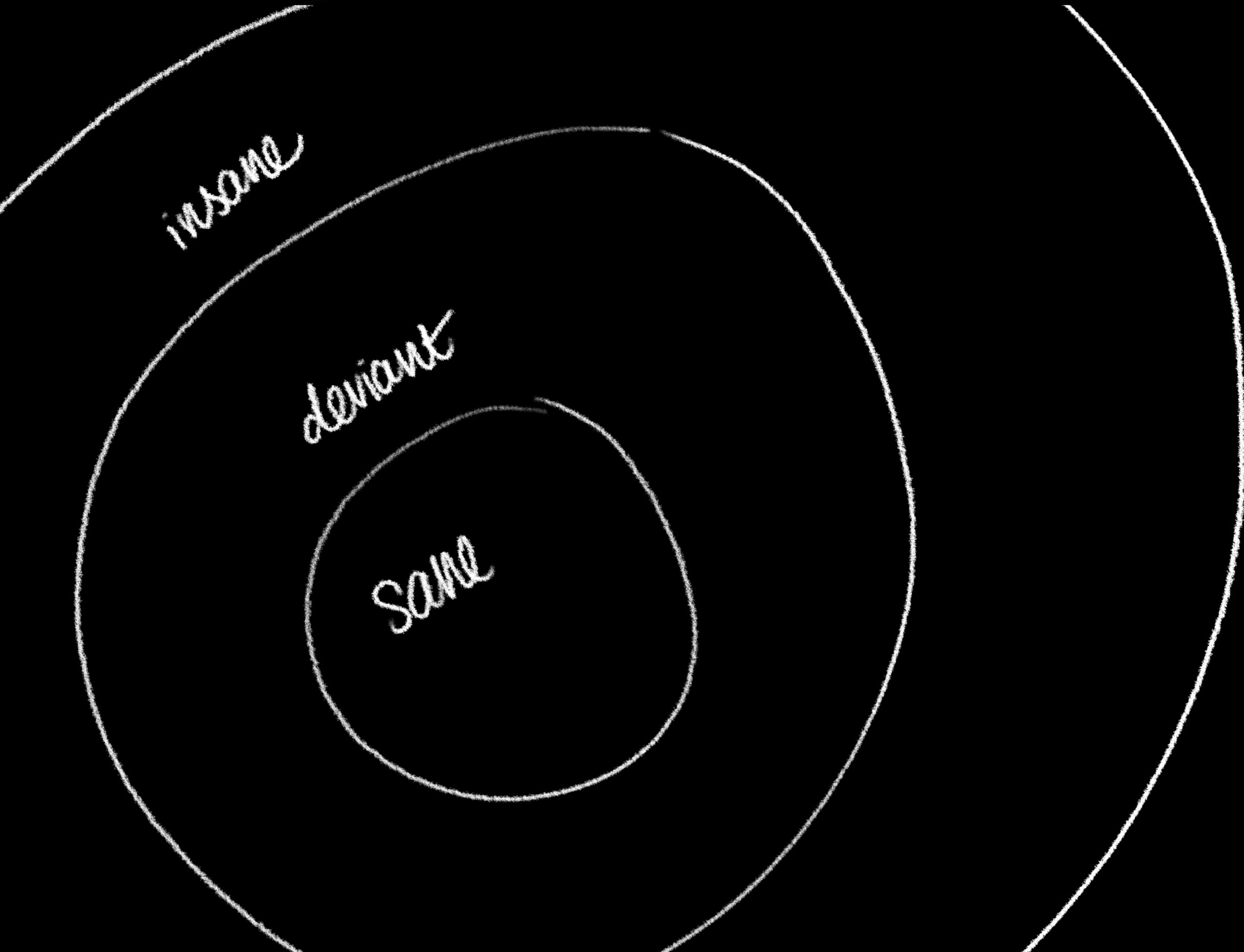 To begin, we have concepts of “sane” and “insane.” In this iteration of the world (that we all keep choosing to live in), sanity keep us coloring within the prescribed lines of thought by design (Bruce 2021).